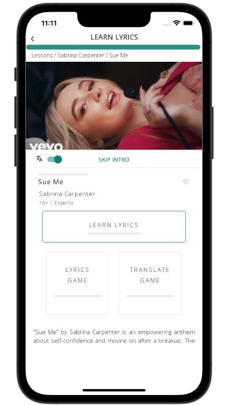 In addition to reading lyric translations, you can now learn English with music and lyrics from your favorite artists.