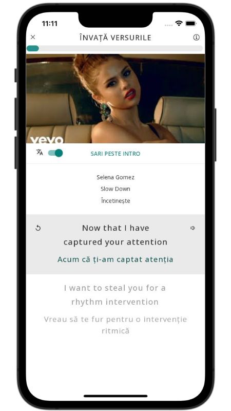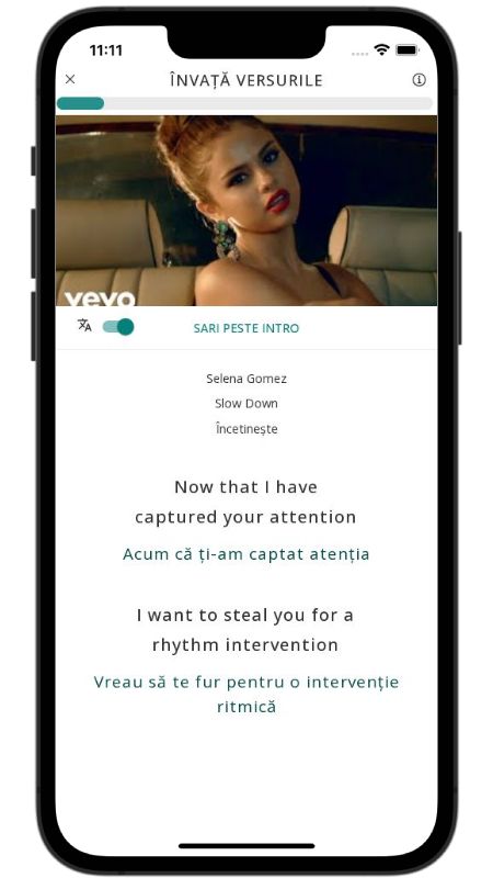 In addition to reading lyric translations, you can now learn English with music and lyrics from your favorite artists.