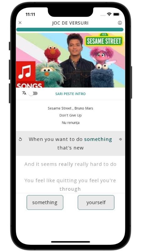 Nu te da bătut este un imn al perseverenței și al bucuriei de a învăța prin încercări repetate. Versurile îl au pe Bruno Mars alături de simpatica gașcă de pe Sesame Street, oferind exemple amuzante – de la prinsul unei mingi care tot lovește nasul, până la primele ture nesigure pe role. De fiecare dată când cazi, aluneci sau crezi că nu ești în stare, refrenul te încurajează cu energie: Keep on trying!