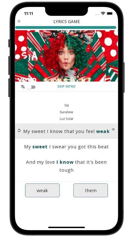 In addition to reading lyric translations, you can now learn English with music and lyrics from your favorite artists.