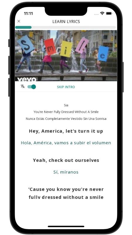 In addition to reading lyric translations, you can now learn English with music and lyrics from your favorite artists.