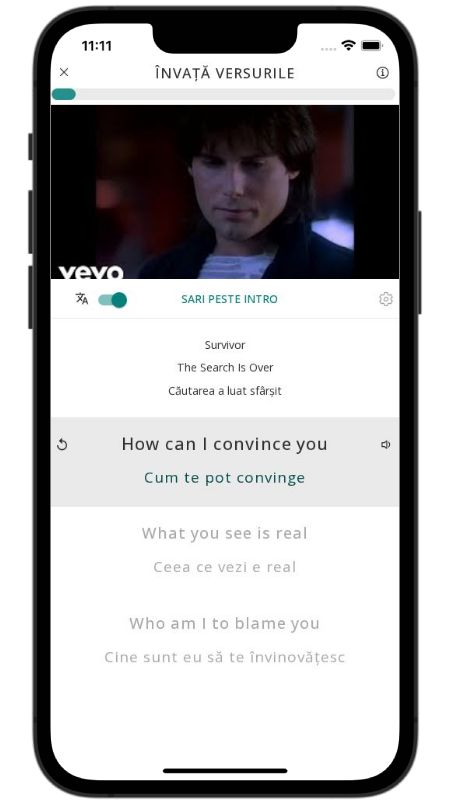In addition to reading lyric translations, you can now learn English with music and lyrics from your favorite artists.
