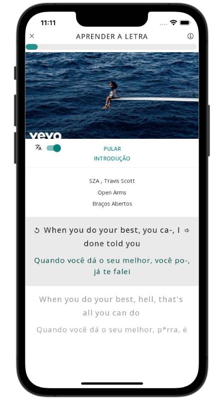 In addition to reading lyric translations, you can now learn English with music and lyrics from your favorite artists.