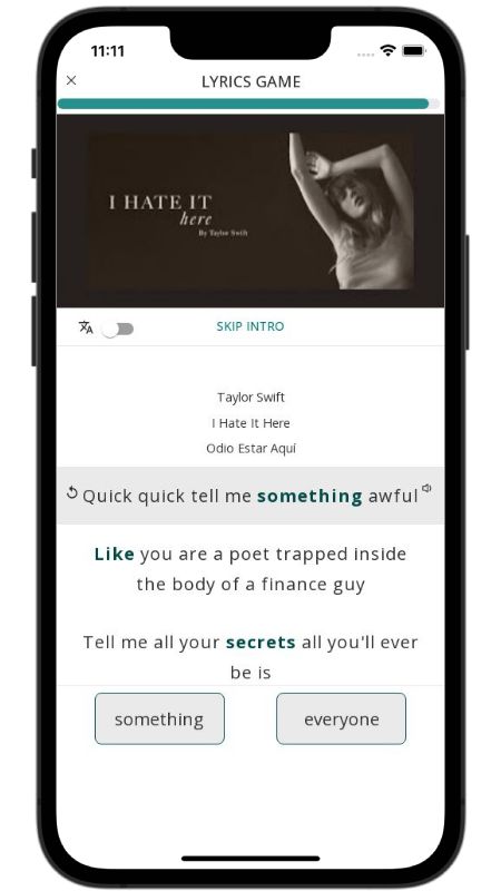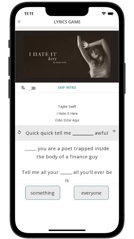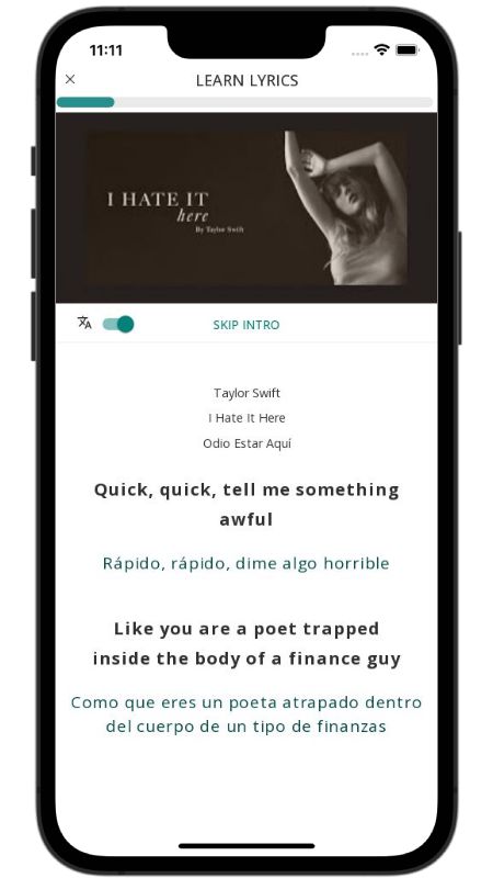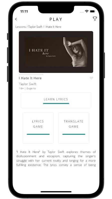 In addition to reading lyric translations, you can now learn English with music and lyrics from your favorite artists.