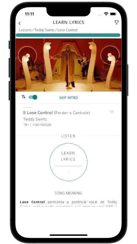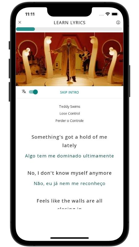In addition to reading lyric translations, you can now learn English with music and lyrics from your favorite artists.