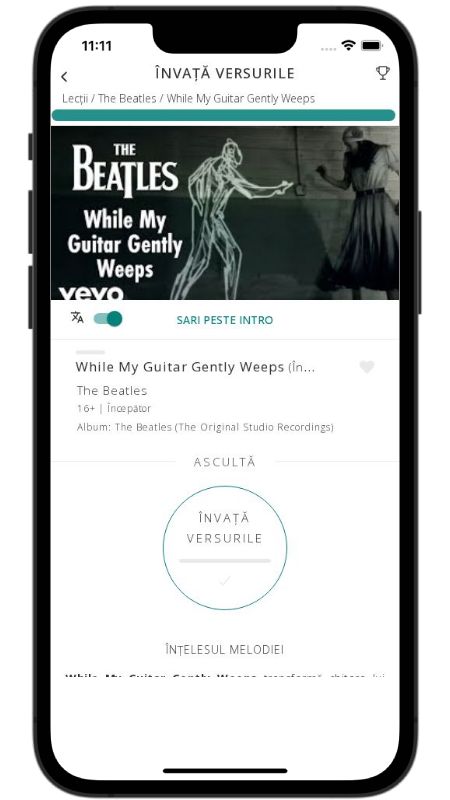 While My Guitar Gently Weeps transformă chitara lui George Harrison într-un personaj care suspină discret atunci când privește lumea. Versurile descriu o scenă aparent banală – o podea ce trebuie măturată, un spectator care își așteaptă rândul în culise – dar sub aceste imagini simple pulsează o tristețe profundă: iubirea din oameni „doarme”, iar societatea a reușit să ne cumpere și să ne vândă emoțiile. Chitara, martor mut, plânge pentru tot potențialul irosit.