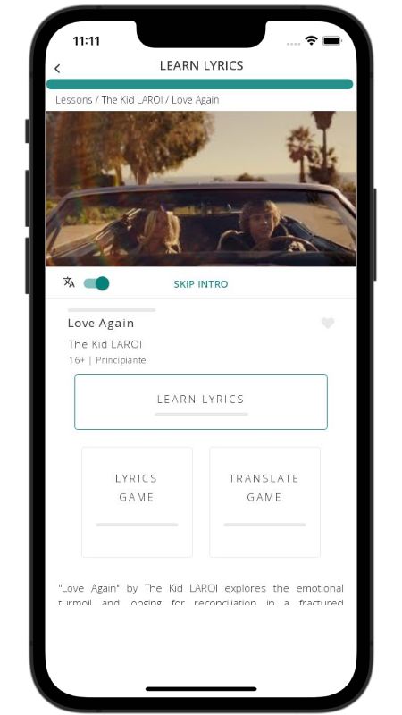 In addition to reading lyric translations, you can now learn English with music and lyrics from your favorite artists.