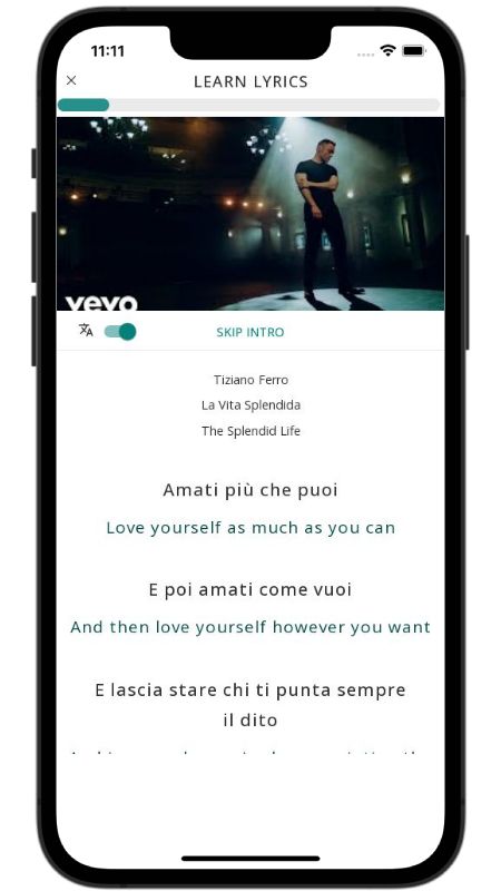 In addition to reading lyric translations, you can now learn Italian with music and lyrics from your favorite artists.